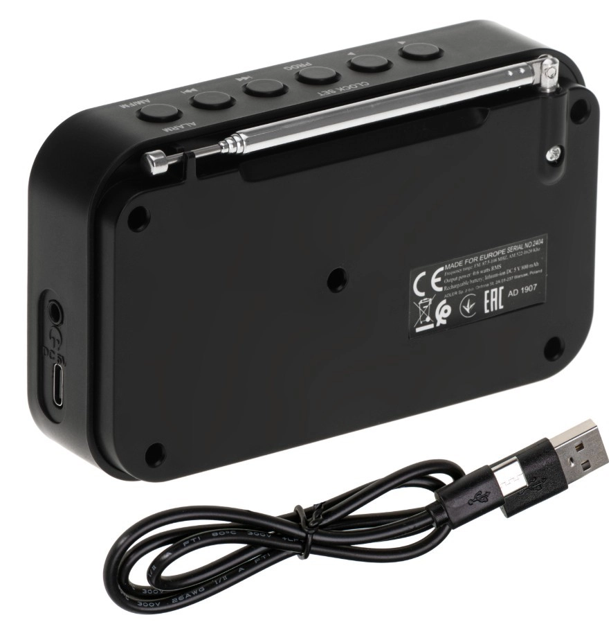 Vyskúšajte integrované funkcie, ako sú hodiny, budík, driemajúci režim a vypnutie so zdržaním. Rádio je vybavené 3,5mm slúchadlovým konektorom pre súkromné počúvanie a má optimálny výkon 0,6 W pre čistý a jasný zvuk. S vstavanou batériou 600 mAh vám rádio poskytne dlhý čas počúvania bez nutnosti nabíjania. Moderné USB-C napájanie zabezpečuje rýchle a pohodlné nabíjanie.