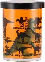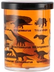 Kelímok je zdobený siluetami a názvami dinosaurov (napr. Stegosaurus, Triceratops, Spinosaurus), takže podporuje aj učenie formou hry. Skvelé ako malý darček, odmena alebo doplnok na detskú párty.