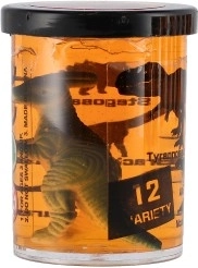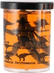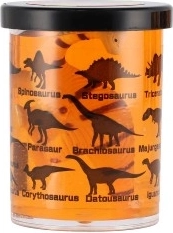 Každý kelímok skrýva malých dinosaurov a potlač s ich siluetami a názvami – zábava aj učenie v jednom.
