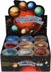 Každá dóza zobrazuje jednu z planét (alebo Slnko) s výraznou farebnosťou – od ohnivého Slnka po modrý Neptún. Skvelé na tematické hranie aj učenie sa o vesmíre.