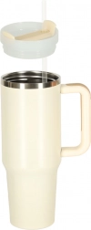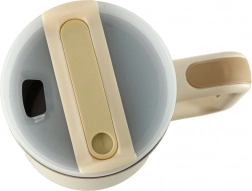 Integrovaná slamka umožňuje rýchle pitie počas pohybu. Robustná rukoväť zabezpečuje, že sa z termohrnčeka pohodlne pije.