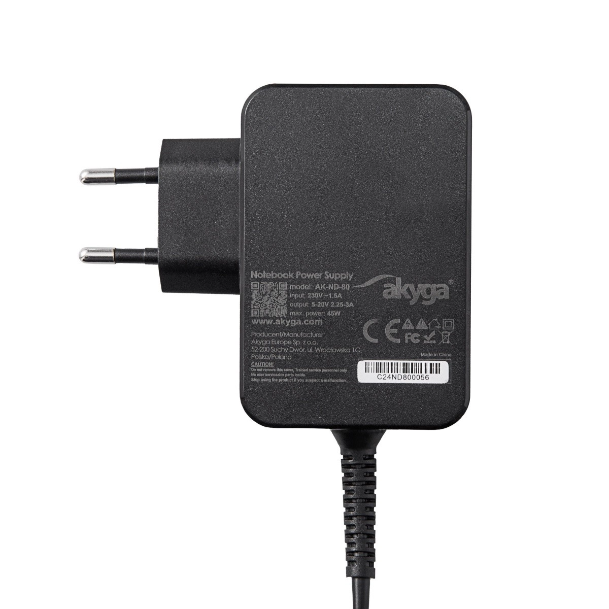 Nabíjačka USB-C Akyga model AK-ND-80 predstavuje univerzálne riešenie pre širokú škálu zariadení: od smartfónov a tabletov po notebooky a herné konzoly ako Nintendo Switch. Je vybavená pevne prichyteným 1.8 m dlhým káblom pre pohodlné použitie.