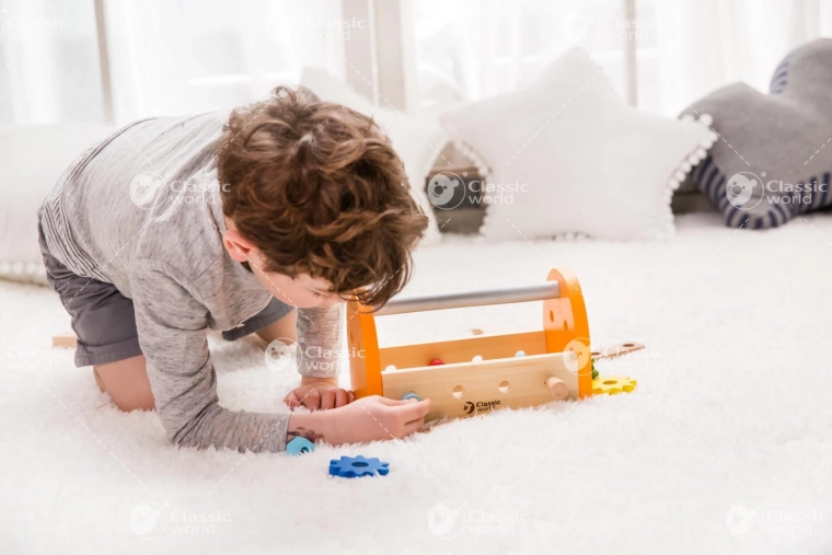 Táto drevená sada náradia poteší všetkých malých kutilov, ktorí radi pomáhajú doma. V pevnom drevenom boxe nájdete všetko potrebné na bezpečné a hravé „opravovanie“. Hračka rozvíja koordináciu ruka–oko, podporuje kreativitu a učí deti základom remeselnej práce.