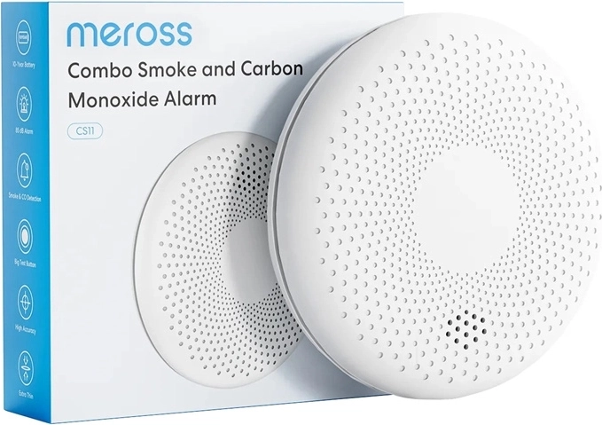 Meross detektor kombinuje fotoelektrické a elektrochemické senzory pre presnú detekciu dymu a oxidu uhoľnatého. Kompatibilný so štandardmi EN14604 a EN50291, ponúka rýchlu reakciu už pri koncentrácii 300 ppm do 3 minút a silný alarm 85 dB.