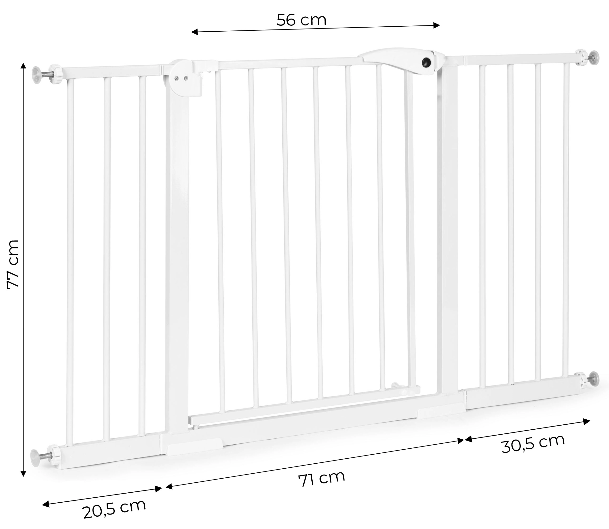 Táto zábrana tiež ponúka nastaviteľnú šírku od 74 do 132 cm, aby umožnila jej použitie v rôznych dverách a schodiskách.