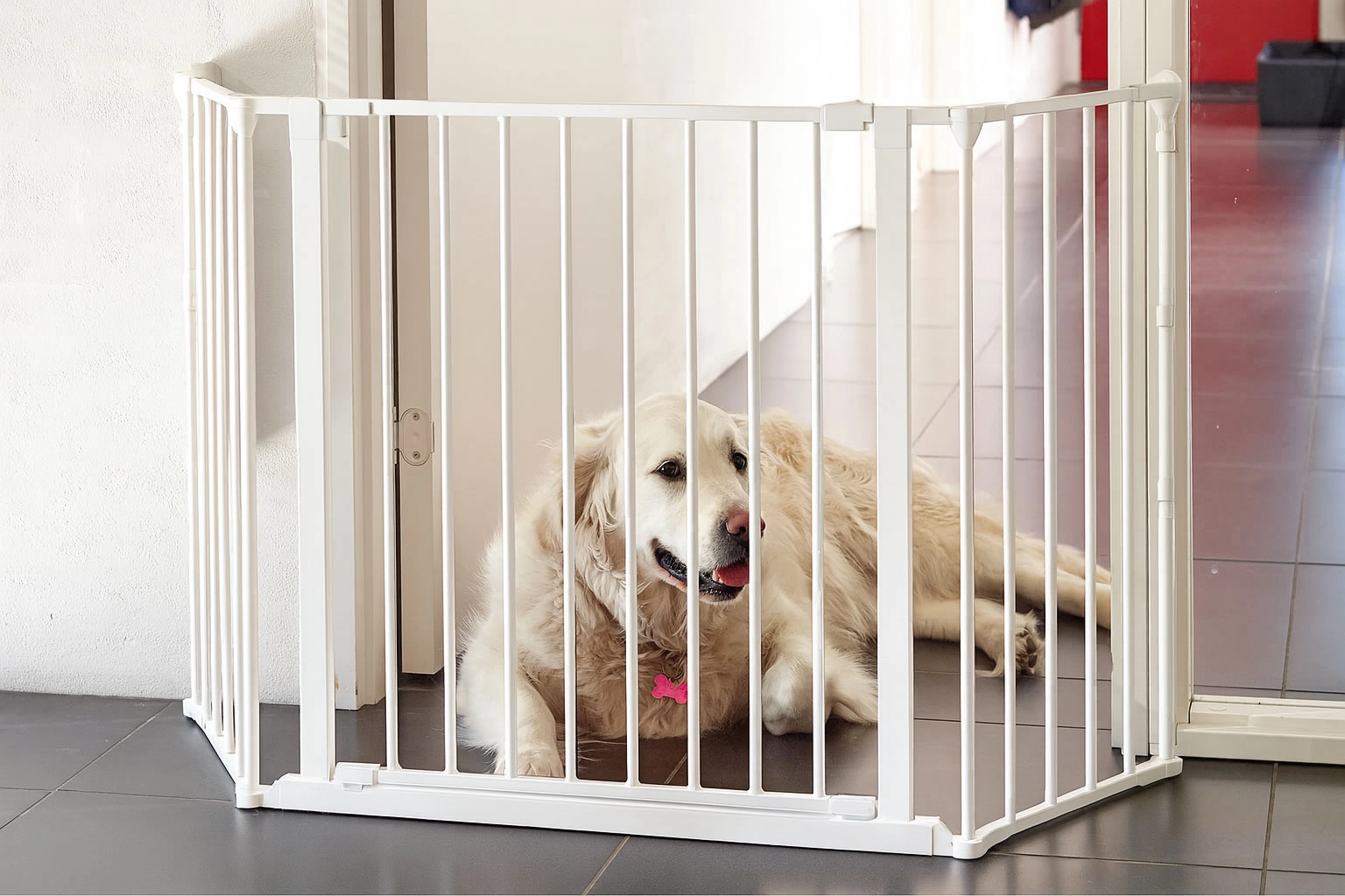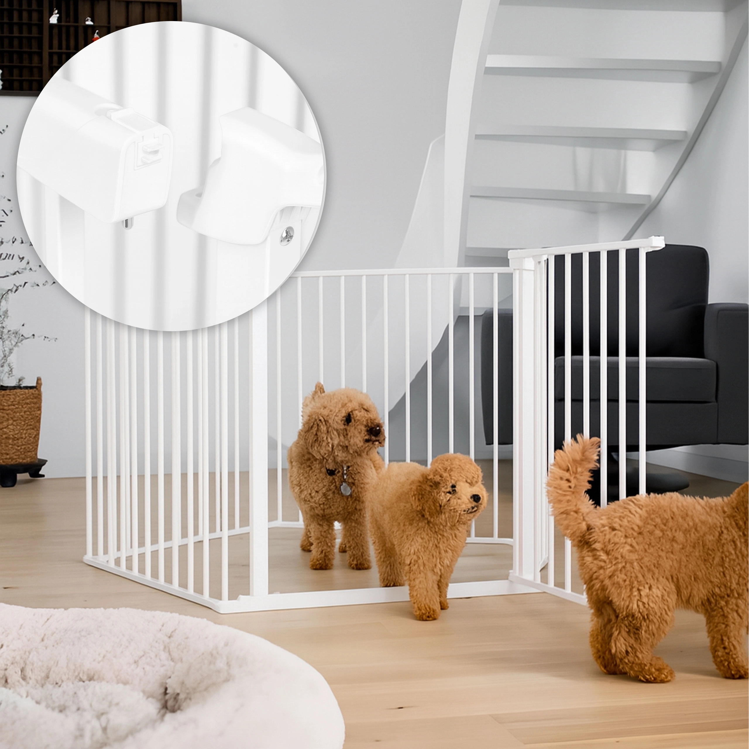 Táto bezpečnostná zábrana je tiež ideálna pre majiteľov domácich zvierat. Vďaka nastavovacím panelom možno vytvoriť uzavretý priestor.