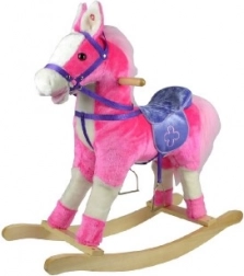 Tento plyšový hojdací koník prináša deťom autentický zážitok z jazdy. Po stlačení jedného uška koník erží, po stlačení druhého sa ozýva klopanie podkov a v oboch prípadoch sa pohybuje chvostík. Batérie sú bezpečne uložené v puzdre na brušku a jednoduchý návod na zostavenie aj vloženie batérií je súčasťou balenia.