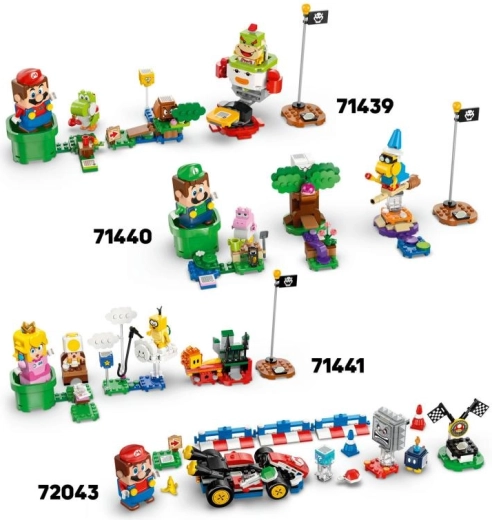 Jazdite, driftujte a strieľajte škrupiny z Bowserovej štvorkolky a Yoshiho káry Mach 8, prerážajte hradby a vyhnite sa pasciam. Pridaním interaktívnych figúrok LEGO Mario, LEGO Luigi alebo LEGO Peach (predávajú sa samostatne) odomknete herné zvuky, reakcie a odmeny ako v digitálnej hre – ideálne pre sólo aj skupinovú zábavu.