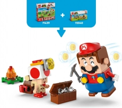 Vytvorte si dobrodružnú scénu s táborom kapitána Toada: postavte stan s truhlicou na poklady, rozďaľte ohník, preskúmajte skalnú plošinu a aktivujte padací most, ktorý pošle protivníka do „lávy“. Hľadajte a schovajte diamanty, porazte Goombu a oddychujte pri ohni – skrátka dokonalá porcia kreatívneho hrania.