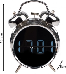 Digitálny budík Izoxis Retro je ideálny pre každého, kto ocenia funkčnosť a štýlové retro vyhotovenie. Jeho kovové a pevné zvončeky zabezpečujú hlasité prebudenie bez zaspania. Bezhlukový mechanizmus chráni pred nepríjemným tikaním a umožňuje kľudný spánok pred ranným alarmom. Hlasové ovládanie aktivuje displej pomocou tlieskania alebo iného zvuku, čo zaručuje praktické a jednoduché použitie.