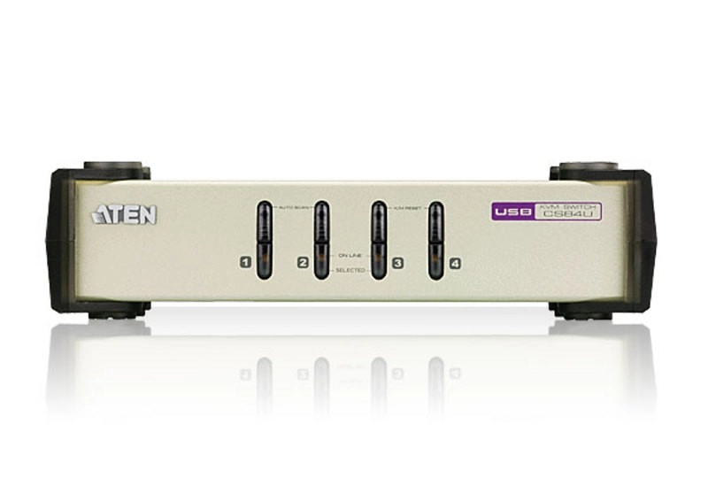 Prepínač ATEN CS84U umožňuje pohodlný prístup k štyrom počítačom z jednej konzoly KVM cez USB a VGA rozhranie. Vďaka technológii Video DynaSync™ optimalizuje rozlíšenie a poskytuje stabilné zobrazenie.