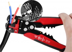 Automatické odizolovacie kliešte 3v1 na prácu s vodičmi a káblami rôznych priemerov. Vďaka automatickému čelnému mechanizmu rýchlo a presne odstraňujú izoláciu bez poškodenia žíl, umožňujú lisovanie izolovaných aj neizolovaných konektorov a strihanie vodičov. Ergonomické protišmykové rukoväte, regulácia sily a dĺžkový doraz zabezpečujú pohodlnú a opakovateľnú prácu doma aj v dielni.