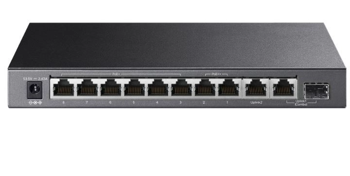Kompaktný sieťový prepínač s 9× RJ45 10/100/1000 Mb/s a 1× combo SFP/RJ45 1 Gb/s ponúka spoľahlivé napájanie cez PoE. Poskytuje 2 porty PoE++ a 6 portov PoE+ kompatibilných s IEEE 802.3af/at/bt, až 60 W na PoE++ port, 30 W na PoE+ port a celkový PoE budget 123 W. Jednoduché Plug and Play zapojenie, režim Extend pre dosah až 250 m a izolačný režim pre vyššiu bezpečnosť siete.