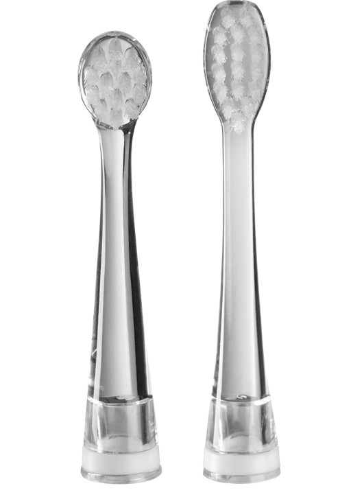 V balení nájdete náhradné hlavice v dvoch veľkostiach (Small a Medium), takže kefka rastie spolu s dieťaťom. Nabíjanie cez USB je rýchle a pohodlné, výdrž batérie je až 60 dní pri čistení 2× denne po 2 minútach.