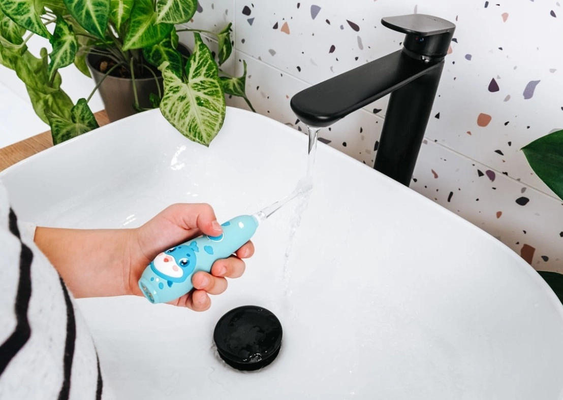 Bezpečné oplachovanie pod tečúcou vodou a používanie vo vani. Farebné LED svetlo motivuje deti k dlhšiemu a pravidelnému čisteniu.