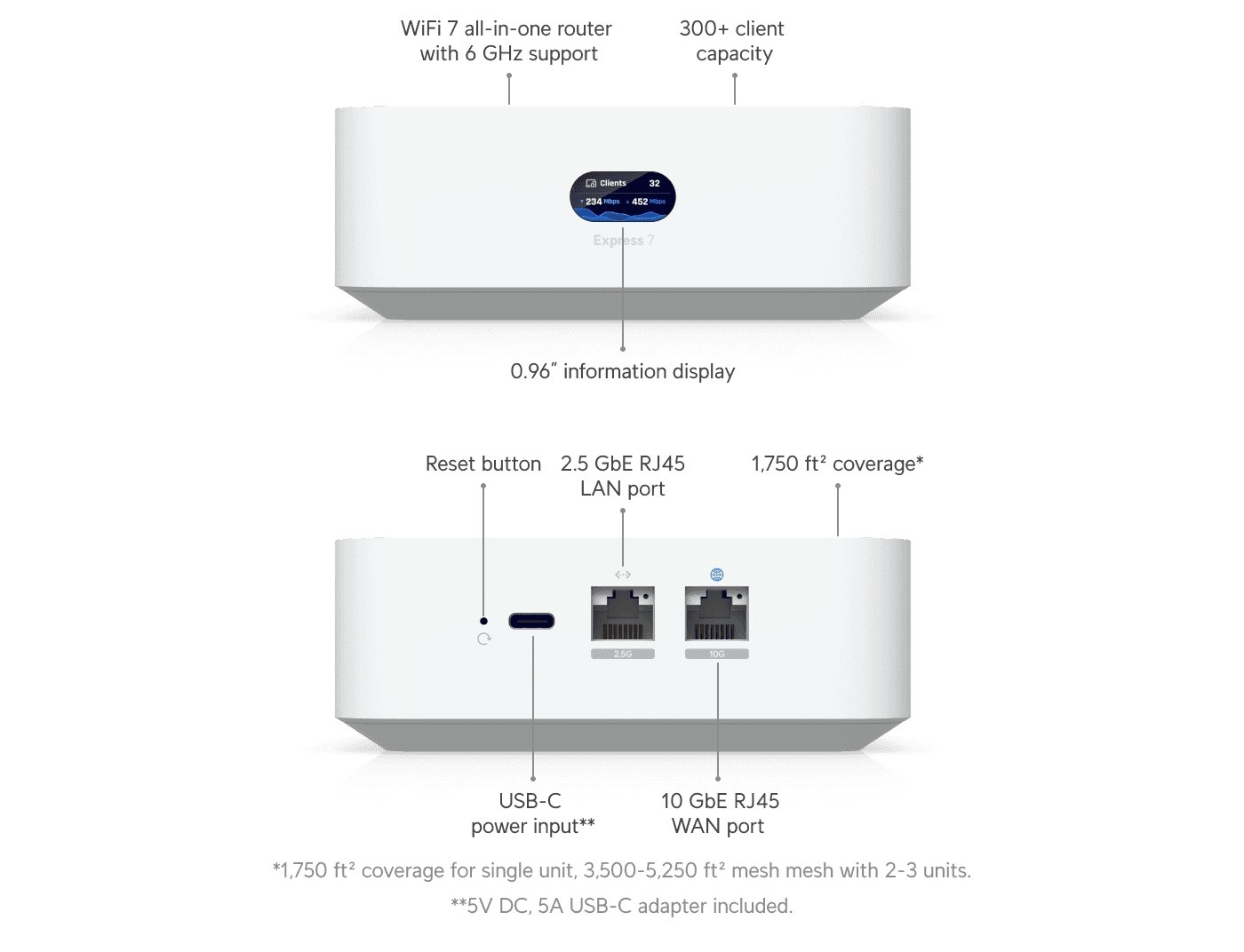 - Všetko v jednom: brána, kontrolér a AP s Wi‑Fi 7