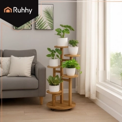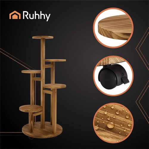 Vneste do interiéru poriadok aj zeleň s ľahkou, mobilnou a praktickou konštrukciou stojana RUHHY. Otočné kolieska s blokáciou umožnia hladké presúvanie bez poškriabania podlahy, zatiaľ čo 6 úrovní poskytne priestor pre rôzne veľké kvetináče v jednej harmonickej kompozícii. Prírodné borovicové drevo je estetické, ľahko sa čistí a je odolné voči vlhkosti – skvelé do interiéru aj exteriéru.