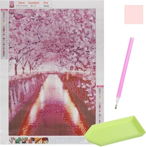 Objavte relaxačný svet diamantového maľovania a vytvorte si vlastné umelecké dielo s motívom romantickej sakurovej aleje. Sada obsahuje všetko potrebné a je ideálna pre začiatočníkov aj pokročilých. Vďaka kódovanému plátnu je práca jednoduchá a presná a hotový obraz žiari jemným, trblietavým leskom. Skvelý spôsob, ako oddýchnuť si, rozvíjať kreativitu a získať originálnu dekoráciu interiéru.