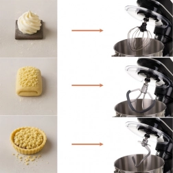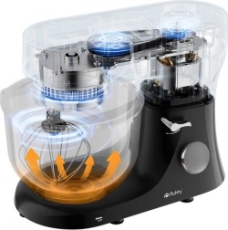 V balení nájdete 3 nástavce (háčik, metlu, šľahaciu balónovú metlu) na širokú škálu úloh – od ťažkých kysnutých ciest po nadýchané krémy a bielkové peny. Protišmykové nožičky zaisťujú stabilitu, vybrané diely možno umývať v umývačke a QR kód s receptami vás inšpiruje k novým nápadom v kuchyni.