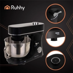 Moderný planétový robot RUHHY s ohrievanou misou s objemom 6,2 l uľahčí miesenie ciest, šľahanie krémov aj prípravu jemných hmôt. 11 rýchlostí, dotykový displej a 3 nástavce zabezpečia presné nastavenie pre každý recept. Výkonný motor 2000 W, stabilná konštrukcia a jednoduché ovládanie robia z tohto pomocníka ideálnu voľbu na domáce pečenie aj každodenné varenie.