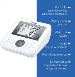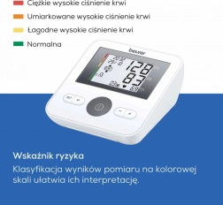 BEURER BM 27 je praktický naramenný tlakomer na presné a pohodlné meranie v pohodlí domova. Vďaka veľkému, ľahko čitateľnému displeju a farebnej klasifikácii výsledkov rýchlo vyhodnotíte svoje hodnoty krvného tlaku. Integrovaná kontrola správneho nasadenia manžety pomáha zaistiť spoľahlivé výsledky pri každom meraní.