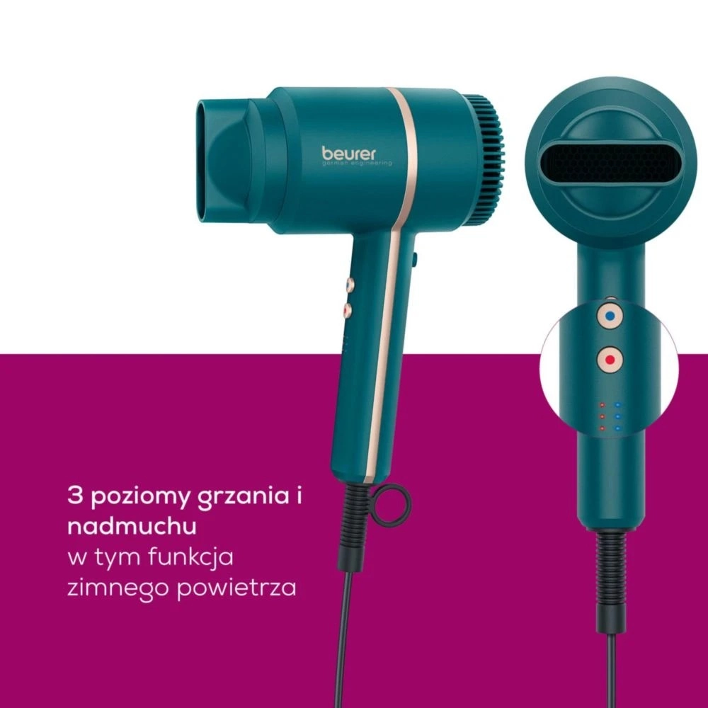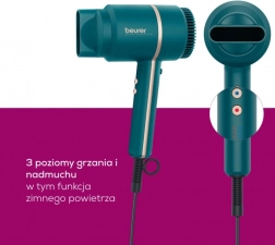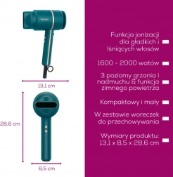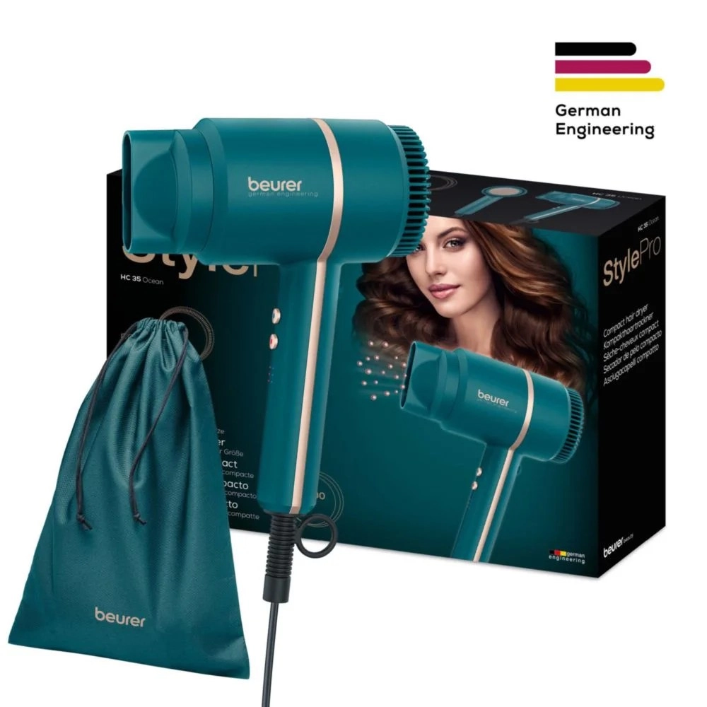 Beurer HC 35 Ocean je praktický malý fén, ktorý kombinuje moderný dizajn s vysokým výkonom. Vďaka kompaktným rozmerom a priloženému vrecku na uloženie je ideálny do kúpeľne aj na cesty. Integrovaná ionizácia znižuje krepatenie, dodáva vlasom lesk a uľahčuje ich úpravu.