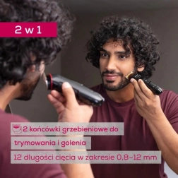 Vďaka dvom nastaviteľným hrebeňovým nadstavcom s 10 dĺžkami strihu a jemnej mikroregulácii 0,8 a 1,2 mm dosiahnete upravený fúz aj precízne kontúry. Prístroj aj strihaciu hlavu možno ľahko opláchnuť pod tečúcou vodou, čo zaisťuje hygienické používanie a rýchlu údržbu.