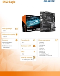 Základná doska B550 EAGLE pre päticu AMD AM4 ponúka kompatibilitu s procesormi Ryzen 5000/4000/3000, spoľahlivé 10+3+1 digitálne VRM, štyri sloty DDR4 s podporou AMD EXPO a dva M.2 pre bleskové úložisko vrátane PCIe 4.0. Nechýba EZ-Latch na rýchle uvoľnenie PCIe, pokročilé chladenie VRM Thermal Armor a moderná konektivita HDMI, DisplayPort a GbE LAN.
