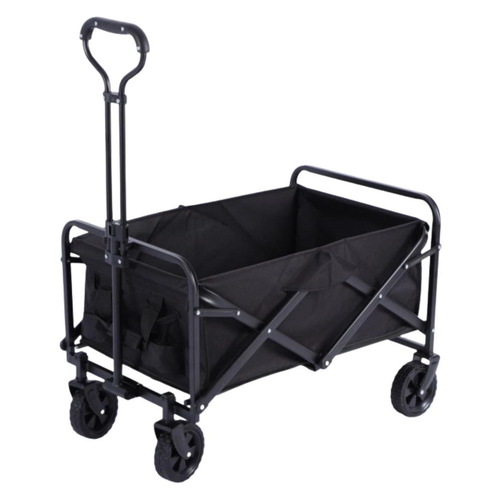 Po použití vozík behom chvíľky zložíte do kompaktných rozmerov, takže sa zmestí do kufra auta aj do skrine. Praktické bočné vrecká na nápoje udržia fľaše po ruke a pevná konštrukcia zvládne aj ťažšie náklady, od záhradného materiálu až po kempingovú výbavu.