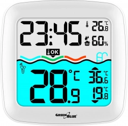 Praktická domáca meteostanica s bezdrôtovým bazénovým teplomerom ponúka dosah až 60 m, veľký a čitateľný farebný displej a prehľadné zobrazenie teploty vody, teploty a vlhkosti vzduchu, času a kalendára. Spoľahlivá kvalita od značky GREENBLUE.