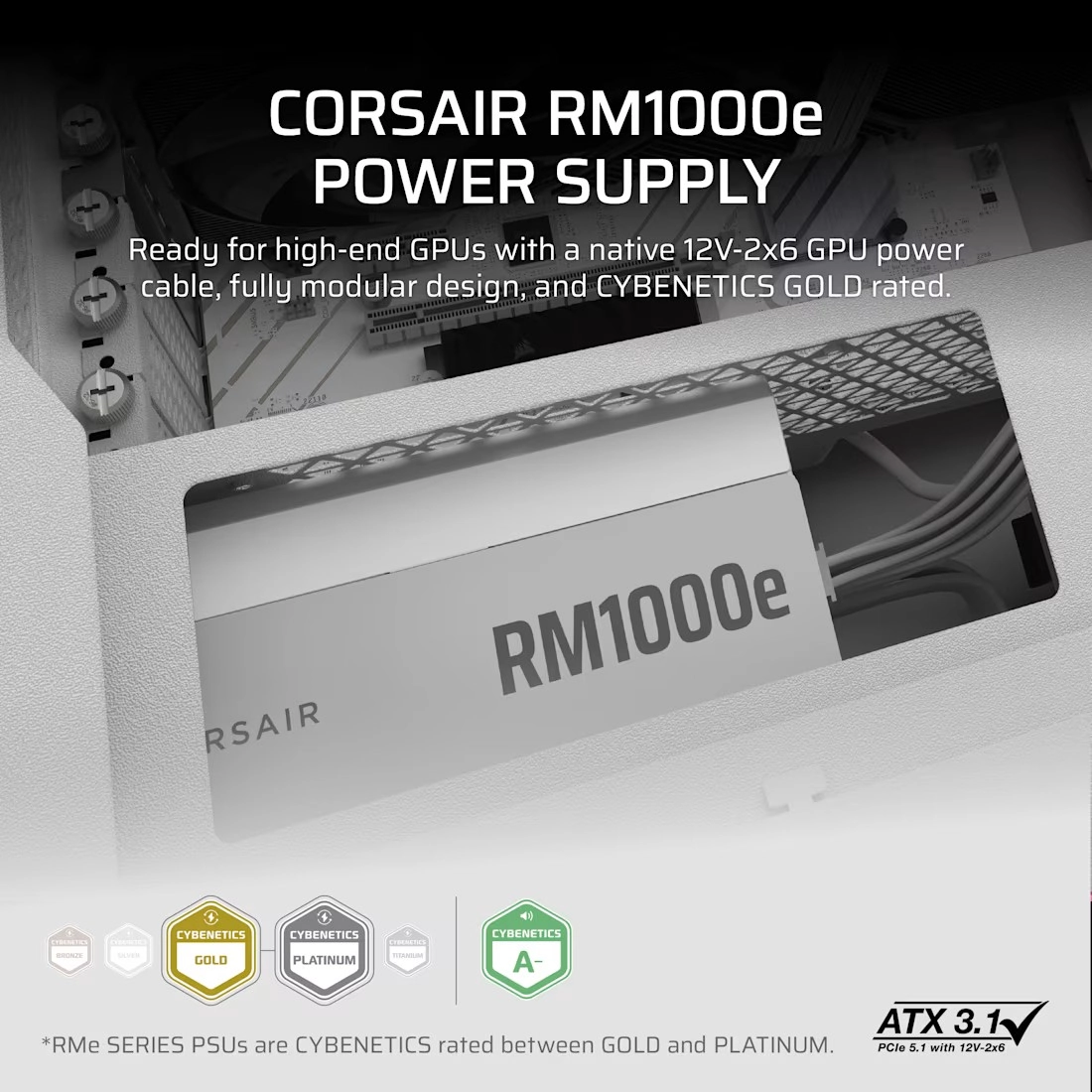 Corsair RM1000e White je navrhnutý pre náročné herné aj pracovné PC, kde sa počíta stabilita, ticho a efektivita. Vďaka moderným štandardom ATX 3.1 a PCIe 5.1 ľahko napája výkonné grafické karty a procesory, zatiaľ čo certifikácia Cybenetics Gold zaručuje vysokú účinnosť a kultivovanú prevádzku.