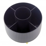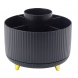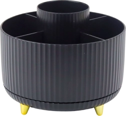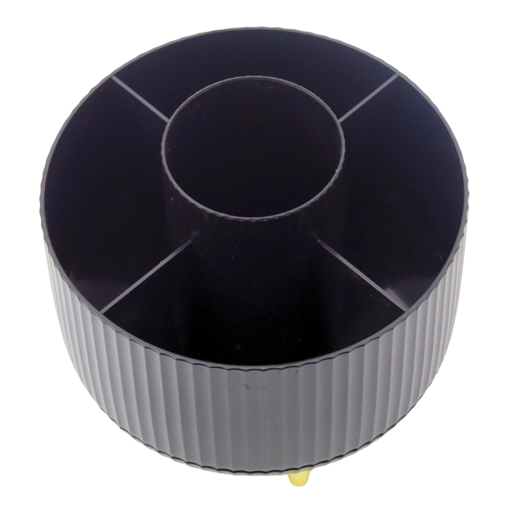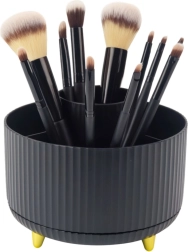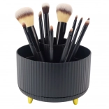 Udržte si poriadok v kozmetike s kompaktným organizérom, ktorý sa plynulo otáča o 360° a umožňuje okamžitý prístup ku všetkým uloženým veciam. Otvorená konštrukcia neobmedzuje výšku, takže pohodlne uložíte aj dlhšie štetce a ceruzky. Minimalistický vzhľad v čiernej farbe sa hodí do domácnosti aj profesionálneho salónu.