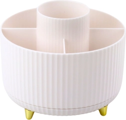Štýlový a praktický organizér na kozmetiku s otočnou základňou 360° vám pomôže udržať dokonalý poriadok. Ponúka 5 priestranných priehradiek na štetce, rúže, ceruzky a ďalšie pomôcky. Vyrobený z odolného ABS, má stabilnú konštrukciu a otvorený dizajn pre ľahký prístup aj k dlhším štetcom.