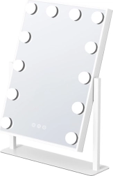 Elegantné hollywoodske zrkadlo s 12 LED žiarovkami poskytuje rovnomerné a jasné svetlo pre perfektné líčenie aj účesy. Dotykový panel umožňuje 3 farby svetla (teplá, neutrálna, studená biela) a plynulé stmievanie s funkciou pamäte. Stabilná kovová konštrukcia a otočný rám 360° zaistia ideálny uhol. Štýlový doplnok na toaletný stolík, do kúpeľne aj do salónu.