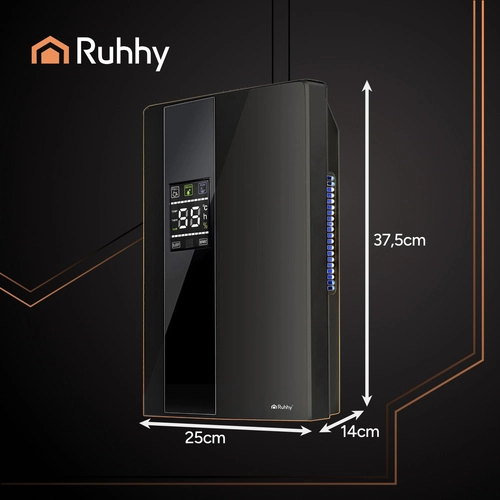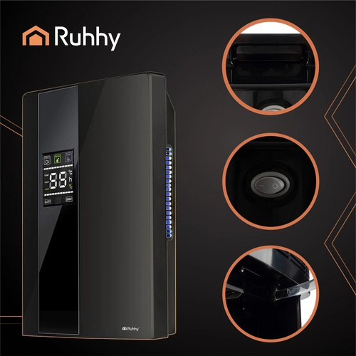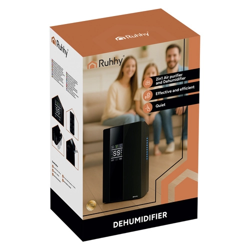 Užívajte si doma čistý, suchý a svieži vzduch každý deň. Odvlhčovač a čistič vzduchu RUHHY 2v1 účinne znižuje vlhkosť, pomáha eliminovať zatuchnutý zápach a zlepšuje kvalitu dýchania. Ponúka tichú prevádzku 25–30 dB, inteligentné nastavenie vlhkosti 40–70 %, dotykové ovládanie, časovač 1–24 h aj diaľkové ovládanie. Vďaka UV funkcii Air Purify osviežuje vzduch a s veľkou nádržou 2000 ml je ideálny do kúpeľne, kuchyne, spálne či pivnice.
