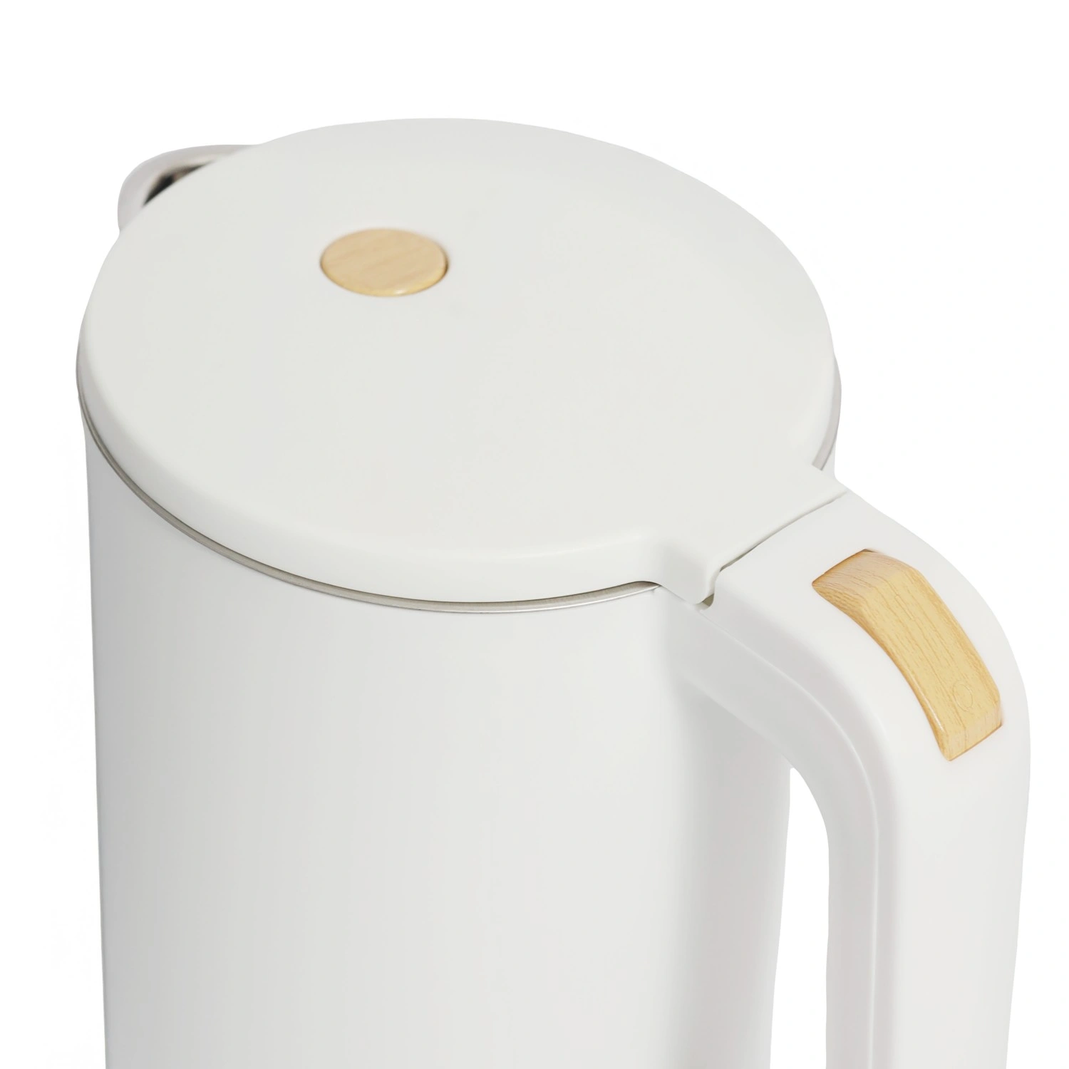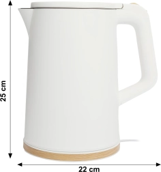 Užite si rýchly a bezpečný ohrev vody kdekoľvek ste. Táto cestovná rýchlovarná kanvica kombinuje výkonných 1500 W s praktickým objemom 1,7 l, takže pripraví čaj či kávu pre celú rodinu v priebehu pár minút. Moderný biely dizajn skvele zapadne do každého interiéru a vďaka dvojitej stene zostáva vonkajší povrch príjemne chladný.