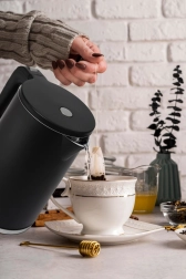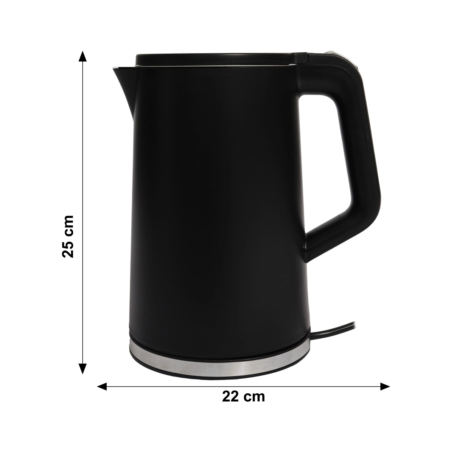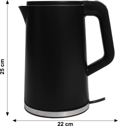 Užite si rýchly a pohodlný ohrev vody kdekoľvek – na chate, v kancelárii aj v malej kuchyni. Kanvica s výkonom 1500 W zaručí svižné dosiahnutie varu, moderné čierne prevedenie skvele zapadne do každého interiéru a dvojstenný plášť lepšie izoluje teplo a je príjemný na dotyk.