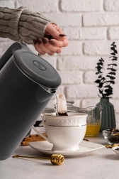 Uvarte si kávu alebo čaj kedykoľvek a kdekoľvek. Táto cestovná rýchlovarná kanvica kombinuje kompaktné rozmery s vysokým výkonom 1500 W, takže vodu privedie do varu rýchlo a úsporne. Nerezová vnútorná nádoba je hygienická, odolná voči korózii a ľahko sa čistí, zatiaľ čo polypropylénové telo s dvojitou stenou zostáva na dotyk chladné pre väčšiu bezpečnosť.