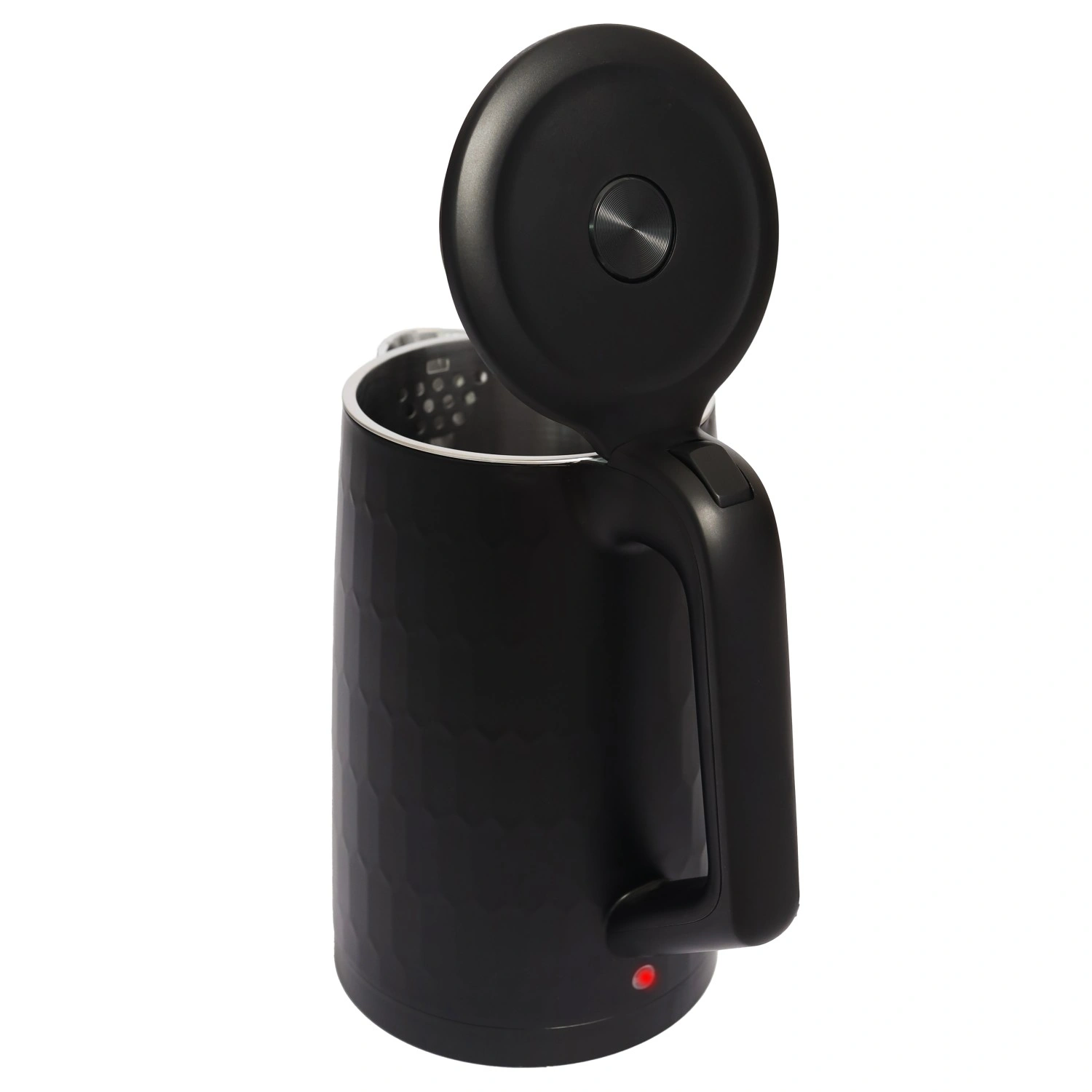 Premyslené detaily uľahčujú každodenné použitie: tlačidlo na otvorenie veka v rukoväti umožňuje pohodlné ovládanie jednou rukou, svetelná kontrolka signalizuje prevádzku, vnútorný ukazovateľ hladiny pomáha presne dávkovať vodu a 360° otočná základňa umožní postaviť kanvicu z akéhokoľvek smeru. Samozrejmosťou je automatické vypnutie po dovarení a ochrana proti chodu nasucho pre maximálnu bezpečnosť.