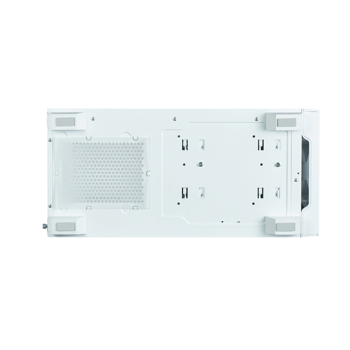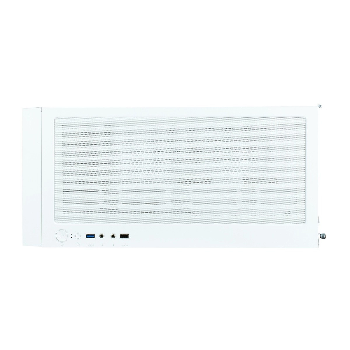 Minimalistické biele prevedenie s bočnicou z tvrdeného skla a premysleným odvetraním po stranách podporuje tichú a efektívnu prevádzku.