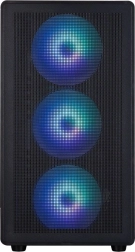 Štýlová a funkčná skriňa M5 Black v prevedení mATX Mini Tower kombinuje skvelý prietok vzduchu s efektným ARGB podsvietením. Vďaka štyrom 120 mm ARGB ventilátorom (3× predné, 1× zadné) a podpore radiátora až 360 mm hore udrží stabilné teploty aj pri výkonných zostavách.