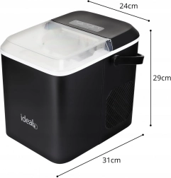 Kompaktný domáci výrobník ľadu IDEAL pripraví kocky už za 6 minút a zvládne až 12 kg ľadu denne. Ponúka 2 veľkosti kociek (S/L), samoodvzdušnenie a samočistenie, tichú prevádzku a intuitívny ovládací panel s upozorneniami. Ideálny na domáce použitie, párty aj do kancelárie. V balení nechýba kôš na ľad a lopatka.