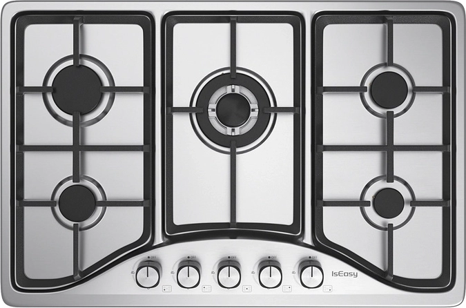 Výkonná plynová varná doska IsEasy z nehrdzavejúcej ocele ponúka päť horákov na rýchle a presné varenie. Vďaka robustným liatinovým roštom, bezpečnostnému ventilu a kompatibilite s NG aj LPG poskytuje spoľahlivý výkon, bezpečnú prevádzku a jednoduchú údržbu v každej kuchyni.