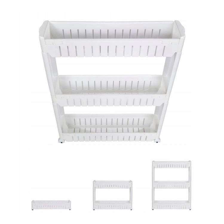 Vďaka 3 odolným a priestranným policiam jednoducho uložíte čistiace prostriedky, kozmetiku a kúpeľňové doplnky, alebo v kuchyni koreniny, cereálie či snacky. Modulárna konštrukcia umožňuje police podľa potreby pridávať alebo odoberať, takže si vnútorný priestor prispôsobíte presne svojim veciam. 4 plynulé kolieska zabezpečujú ľahkú manipuláciu aj v úzkych uličkách.