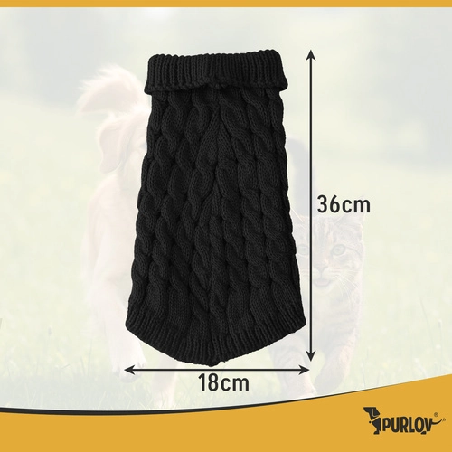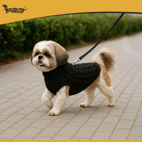 Hrejivý pletený sveter PURLOV udrží vášho miláčika v teple a pohodlí aj v chladných dňoch. Jemná akrylová priadza je príjemná na dotyk, nedráždi pokožku a vďaka pružnosti neobmedzuje v pohybe. Ľahko sa oblieka, má 2 otvory pre predné labky a praktický otvor na vodítko.