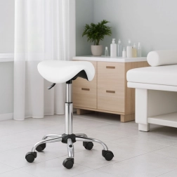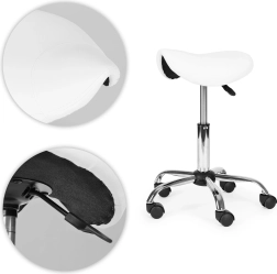 Hľadáte pohodlné a spoľahlivé sedenie na každodennú prácu? Otočná sedlová stolička MODERNHOME je ideálnou voľbou pre kozmetické a kadernícke salóny, lekárske ambulancie, masáže aj tetovacie štúdiá. Ergonomické sedlo podporuje správne držanie tela, uľavuje bedrám a napomáha zdravej polohe pri dlhom sedení.