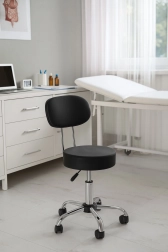 Profesionálna otočná stolička s operadlom pre salóny krásy, kaderníctva a zdravotnícke prevádzky. Ponúka plynulé nastavenie výšky, 360° otočné sedadlo, stabilnú kovovú konštrukciu a odolné čalúnenie z PVC kože. Vďaka mäkkej 8 cm pene, päťramennému podstavcu na kolieskach a nosnosti 136 kg zaručuje pohodlie, mobilitu a dlhú životnosť.