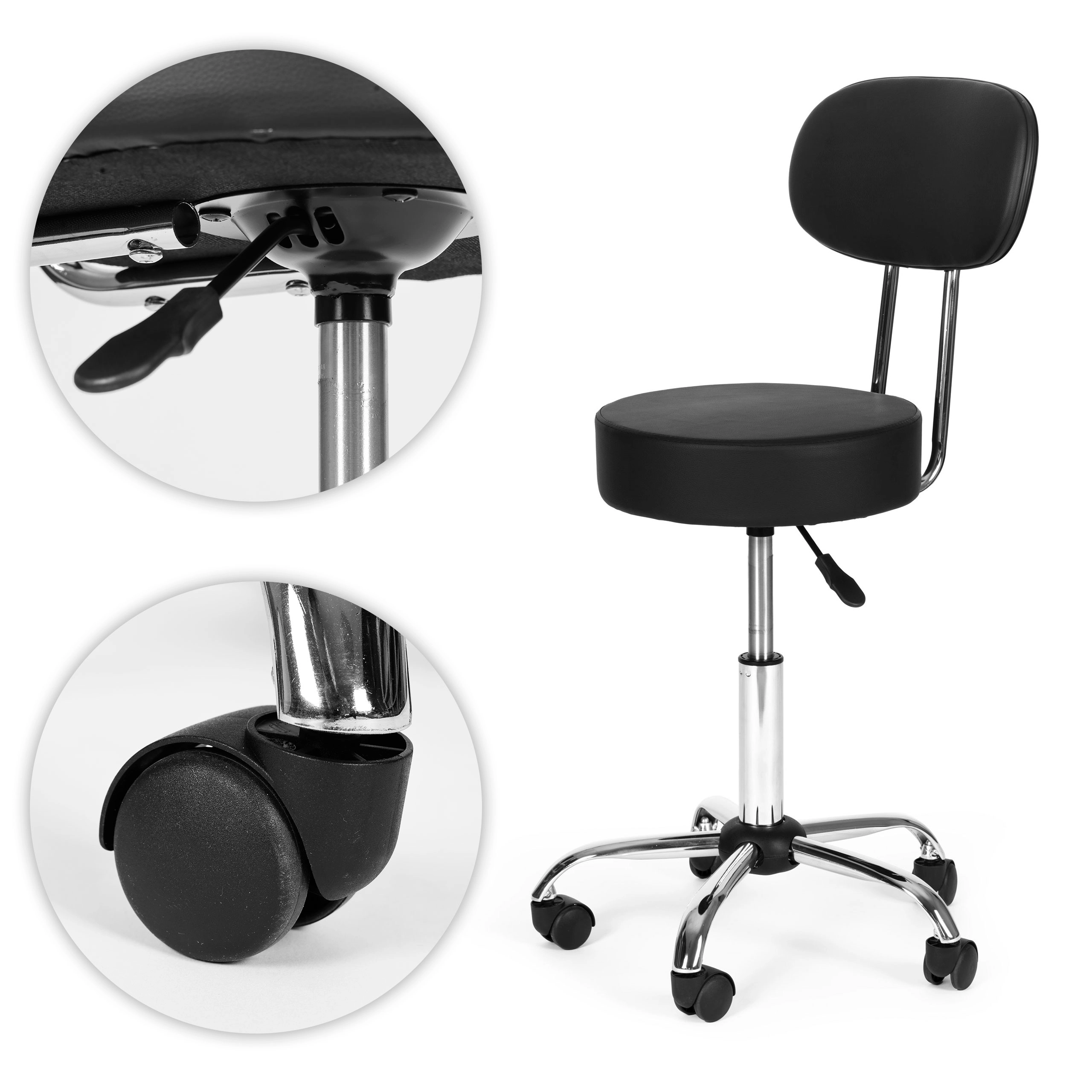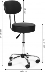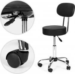 Päťramenná základňa s kolieskami garantuje stabilitu a tichý, plynulý pohyb po rôznych typoch podláh bez poškriabania. PVC koža je odolná, ľahko sa čistí a vydrží kontakt s vodou, olejmi aj dezinfekčnými prostriedkami. Stolička je tak skvelou voľbou do salónov krásy, kaderníctiev, masážnych aj tetovacích štúdií.