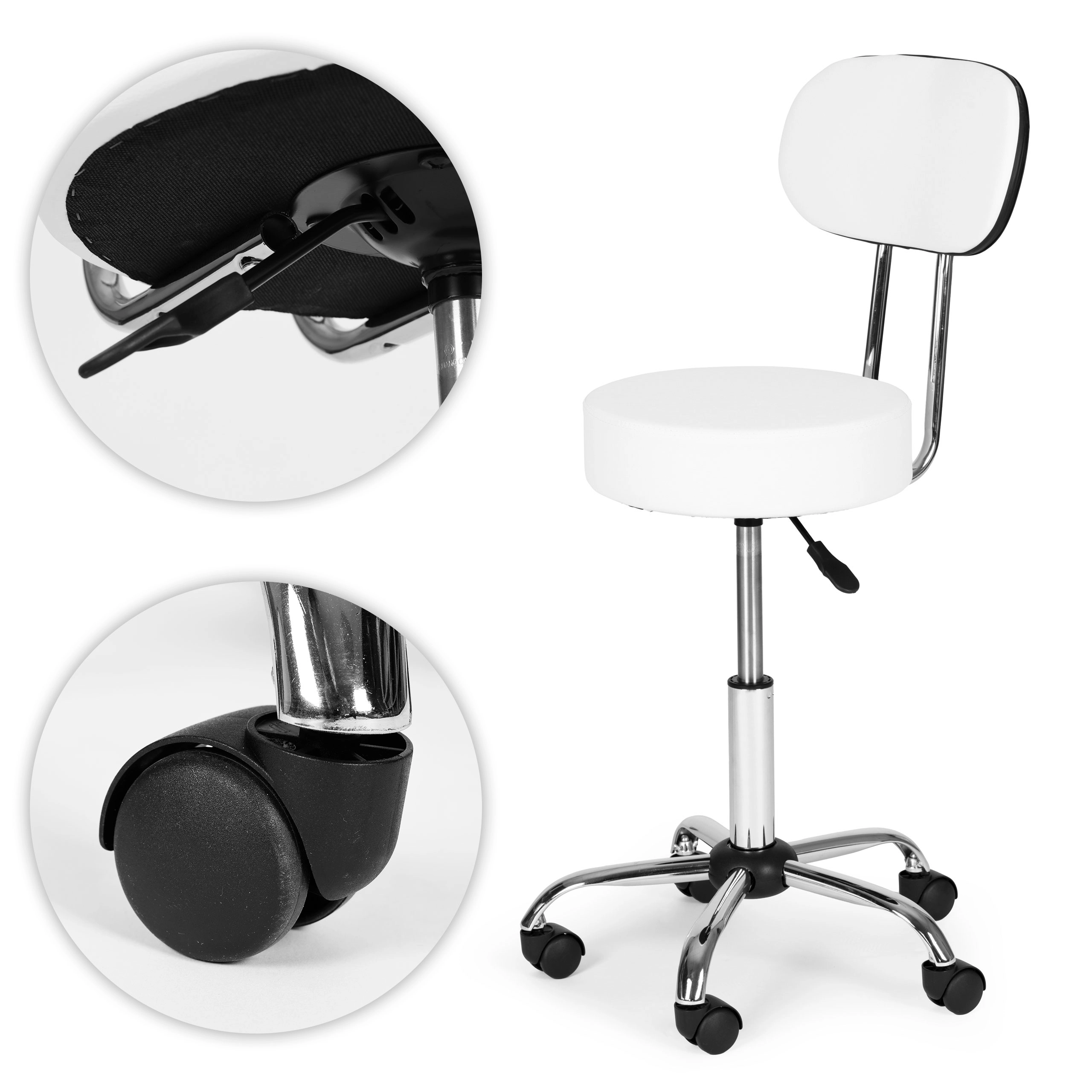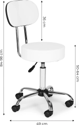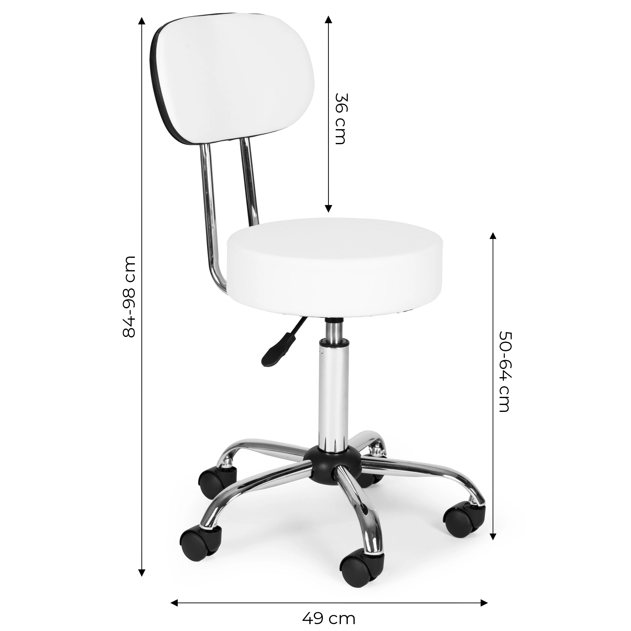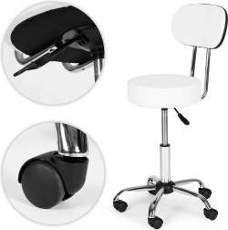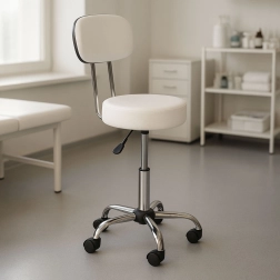 Otočná stolička s operadlom ModernHome je ideálnou voľbou pre kozmetické salóny, kaderníctva, ambulancie, masážne aj tetovacie štúdiá. Kombinuje ergonómiu a funkčnosť s čistým moderným dizajnom v bielej farbe, ktorý sa hodí do každého interiéru.