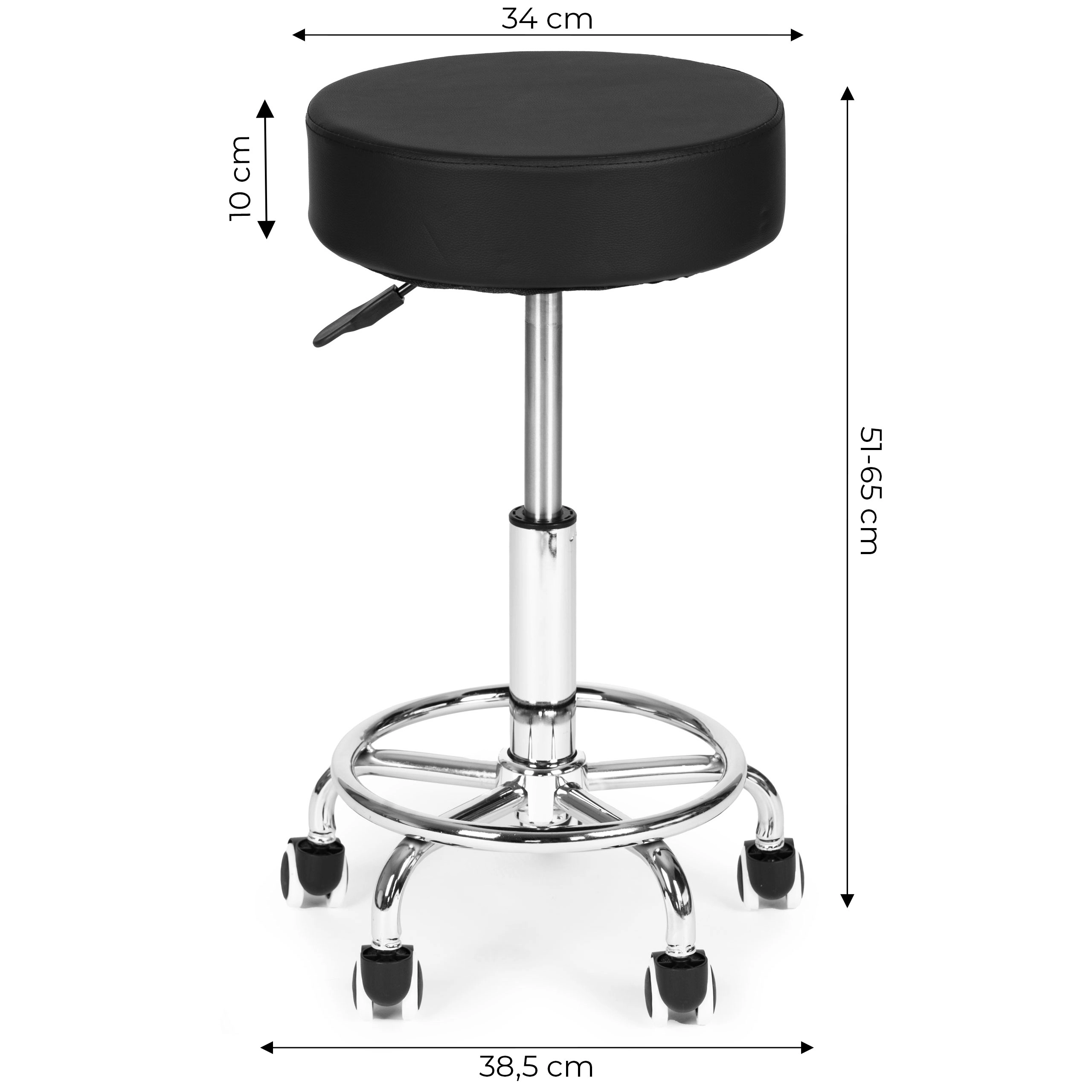 Ergonomické sedenie pre profesionálov – stolička skvelo slúži v kozmetických a kaderníckych salónoch, lekárskych ambulanciách, masérňach aj tetovacích štúdiách. Plynulý pneumatický piest umožňuje rýchle prispôsobenie výšky, zatiaľ čo 360° otočné sedadlo uľahčuje prácu bez zbytočného vstávania.